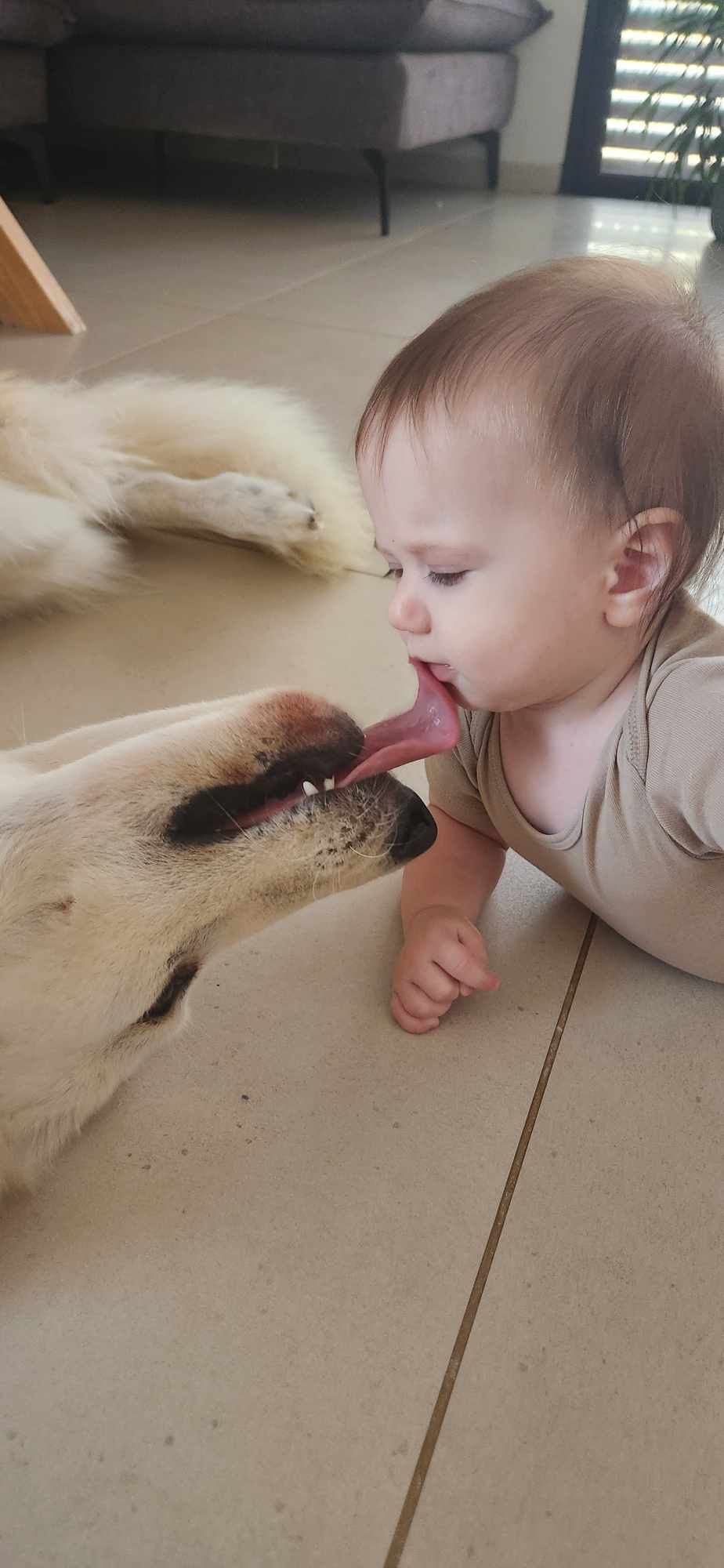 מרגע שאיתי למד לזחול המעבר לזחילה על הכלב הייתה מהירה מאוד, דבר שזכה בדרך כלל למענה בליקוק עדין.